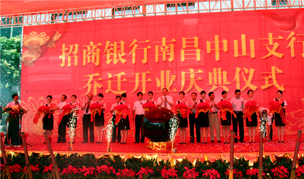 东湖区委常委、区政府常务副区长钟益民对招行中山支行乔迁开业表示了衷心的祝贺并寄予厚望,充分肯定了招行长期以来为企业和百姓提供的金融服务,希望招行提供更丰富、更便捷、更优质的金融服务,为区域经济发展作出新的更大的贡献。江西变压器徐宏军董事长代表客户做了发言,充分肯定了招行良好的品牌形象和优质的服务,表示将一如既往与招行合作,寻求更深更宽的合作空间,实现银企双赢。招商银行南昌分行祝建民副行长代表招行致辞,感谢东湖区委区政府以及社会各界对招行的关注和支持,表示将进一步加大对青山湖西岸的金融支持力度,抢抓南昌打造全省“核心增长极”的重要金融机遇,加速东湖区不断提升金融服务层次。随后,各位领导嘉宾共同为支行开业剪彩并启动激光球,礼炮轰鸣、彩带四溅,庆典仪式在一片喜庆氛围中圆满落下帷幕。